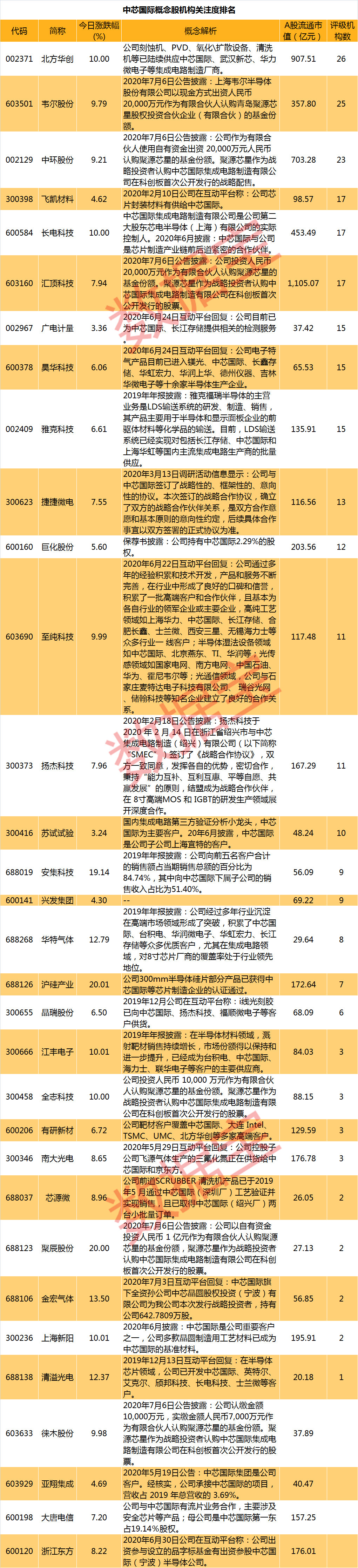在龙头示范效应下,A股中芯国际概念也大幅上涨,概念指数收盘涨幅超过10%,30多只概念股全线上涨,10多只个股涨幅超过10%。其中,涨幅最大的是沪硅产业和聚辰股份,均涨20%以上,安集科技、金宏气体、华特气体等13股涨幅超9%,芯源微、南大光电、浙江东方等12股涨超5%。