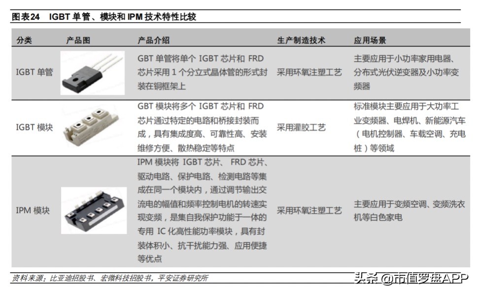 按照不同的芯片封装方式,市场上的IGBT产品大致分为分立器件、模块和IPM三类,斯达半导主要产品就属于IGBT模块类产品。