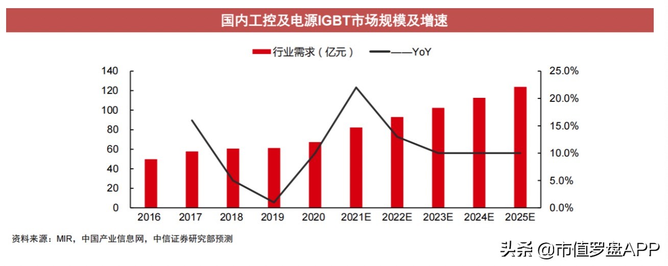 其次,我国已经进入经济高质量发展的新阶段。从过去追求数量的粗放式发展路径转移到了注重质量的精细式发展路径。发展模式的升级势必要伴随着产业转移和改造的过程。未来,将会有更多的实体经济企业全面拥抱更加现代化的技术体系和管理方式,自动化控制水平将不断提高。IGBT在工业自动化程度提高的过程中市场前景较为明朗。