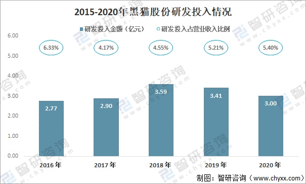 2015-2020年黑猫股份研发投入情况