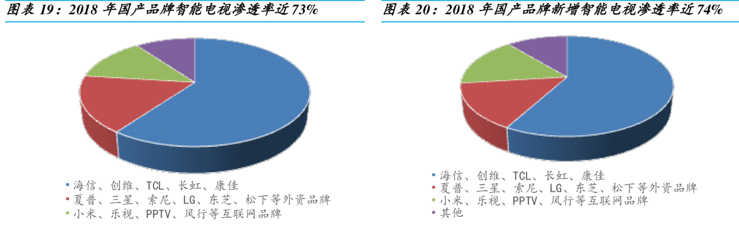 公司液晶显示主控板卡下游客户主要为电视整机厂商,目前已应用于TCL、海信、海尔、康佳、长虹、创维、乐视、小米、微鲸、Vizio、 夏普、东芝、松下等公司的产品。覆盖从传统模拟电视、数字电视到智能电视,2018年全球出货量第一,市占率超35%。