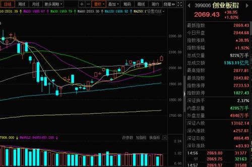 指数方面,受到昨晚美股大涨的刺激,今天A股沪深指数全部高开,开盘后指数一路北上,上午收盘后,沪指涨1.3%,创业板涨2%,午后开盘指数维持高位横盘,收盘维持大涨。