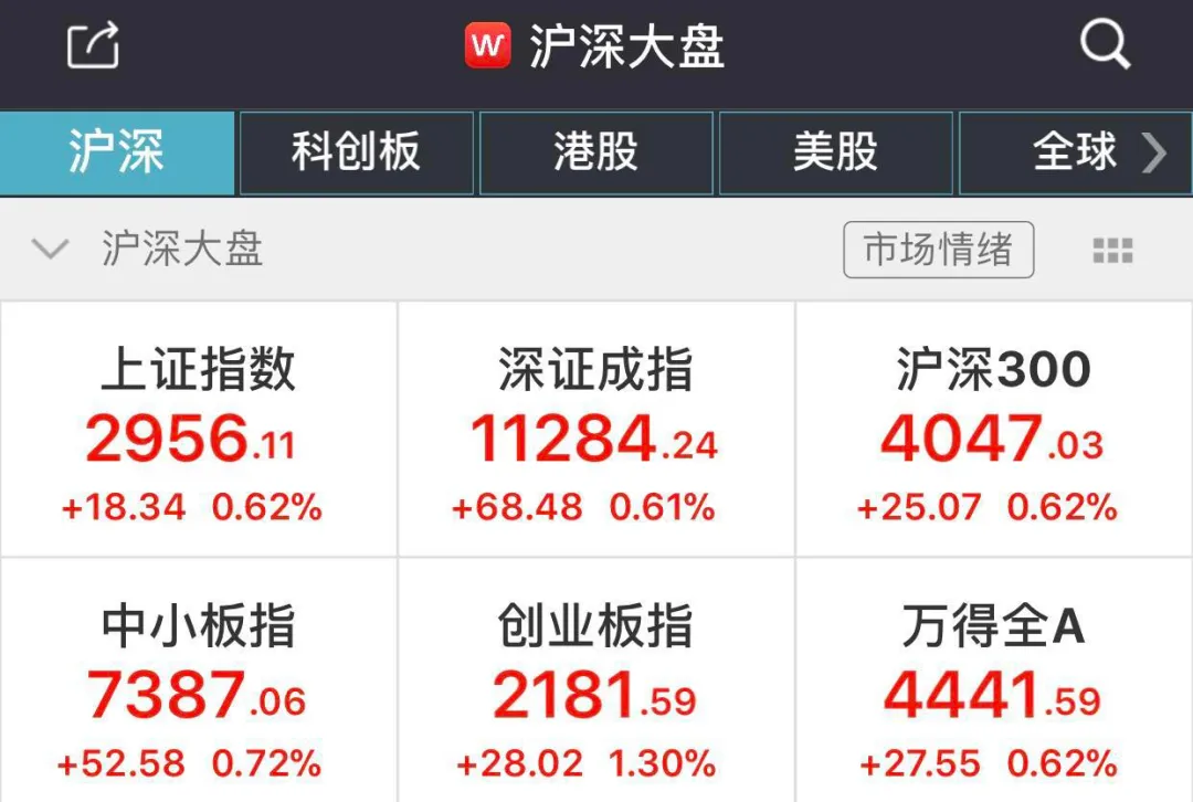 三大股指震荡走高,盘面上抖音概念掀涨停潮,14只涨停,板块涨幅4.66%。医药、白酒等防御板块受资金追捧,游戏、特斯拉、光刻胶、大金融、知识产权、游戏、燃料电池等板块轮番拉升,整体看,题材炒作主要围绕抖音概念,其余热点加速轮动。未名医药继续一字跌停,省广集团封板,暴风集团、长城影视上演地天板,高位人气股在连续调整后亏钱效应有所修复。盘面上,抖音、游戏、医药制药等涨幅居前,海南、农业种植、Mini LED等跌幅居前。截至收盘,沪指涨0.62%,报收2956点;深成指涨0.61%,报收11284点;创业板指涨1.30%,报收2181点。沪股通净流入32.2亿,深股通净流入27.9亿。