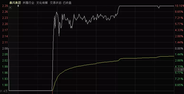 同样的戏码也在长城影视上上演。10时29分,长城影视跌停板放量飙升,不到1分钟股价翻红,尾盘封住涨停板。