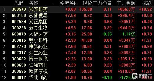或受眼科医疗服务空间巨大利好,今日眼科医疗板块强势上扬。截至6月10日收盘,眼科医疗板块涨超2%,涨幅居前。个股方面,兴齐眼药涨超8%,莎普爱思涨超7%,爱尔眼科涨近3%,冠昊生物、欧普康视等股也纷纷跟涨。