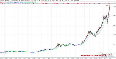 与此同时,爱尔眼科的股价自上市以来也翻了逾40倍,是名副其实的“十年十倍股”。截至10日收盘,其股价涨近3%,报于41.8元,最新总市值为1683亿元。与此同时,爱尔眼科也十分受机构的青睐,据wind数据显示,2020年一季度末,150只机构共持有爱尔眼科178815.65万股。