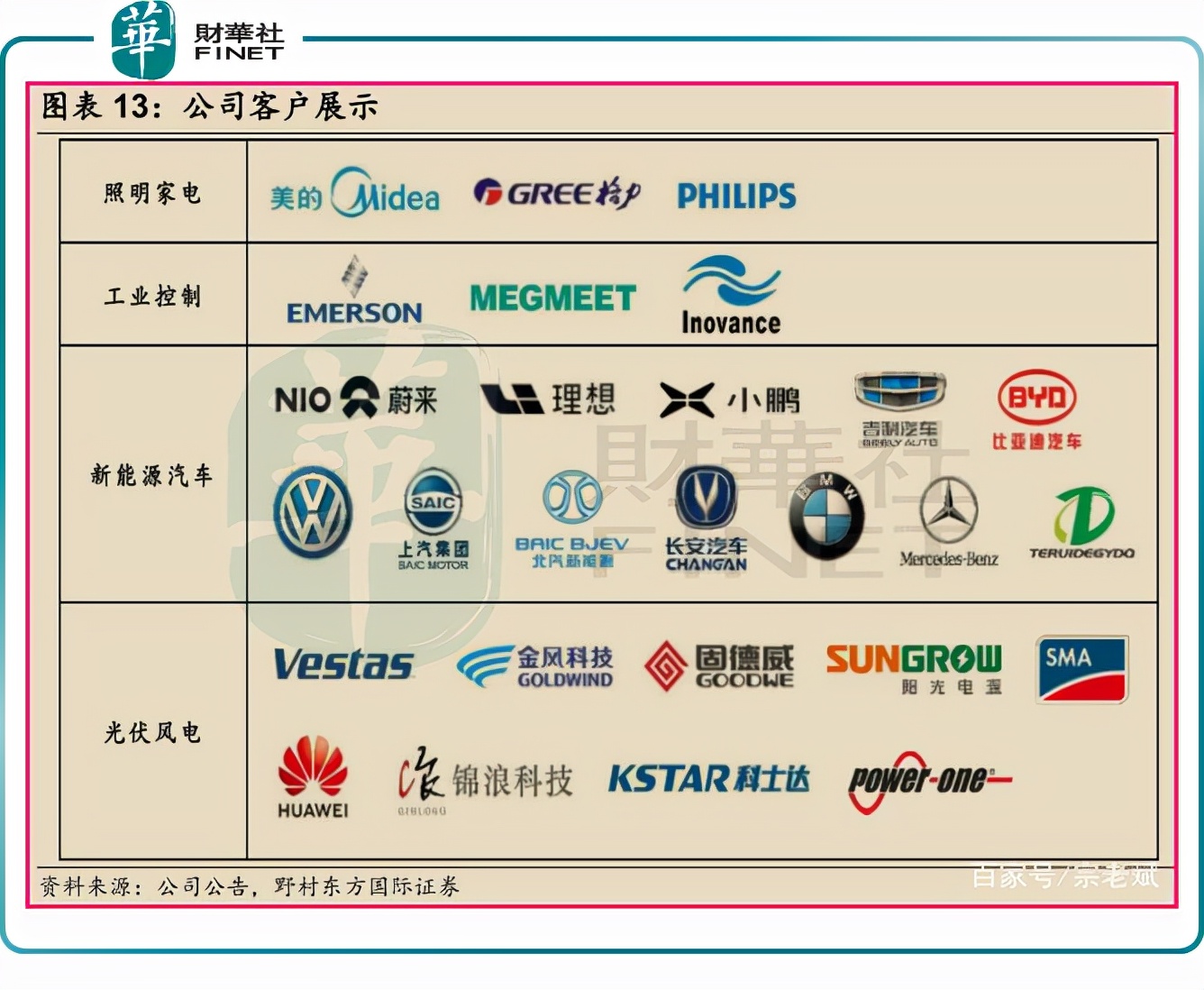照明市场:照明市场是目前公司盈利的重点,客户包含了照明市场上所有的巨头企业,包括飞利浦,欧司朗,通用照明等。照明家电与工业控制的客户情况如下: