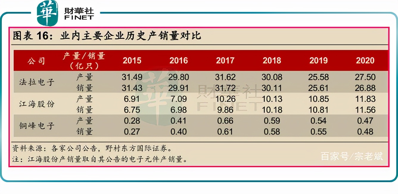 以2020年的产销量数据来看,法拉电子是江海股份的两倍还要多。
