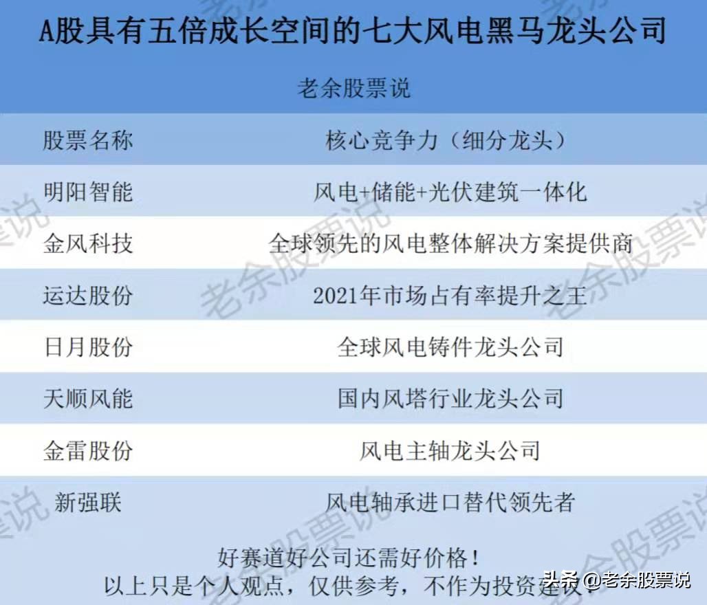老余特地帮大家梳理出来了风电板块的七大黑马龙头公司。新来的朋友记得先加个关注,还没有点赞的朋友,麻烦你帮我点赞支持一下。