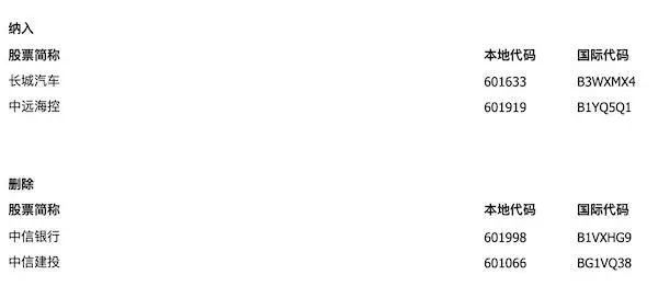 据最新报道,富时罗素调整富时中国A50指数成分股,纳入两大牛股长城汽车、中远海控,删除中信银行、中信建投。