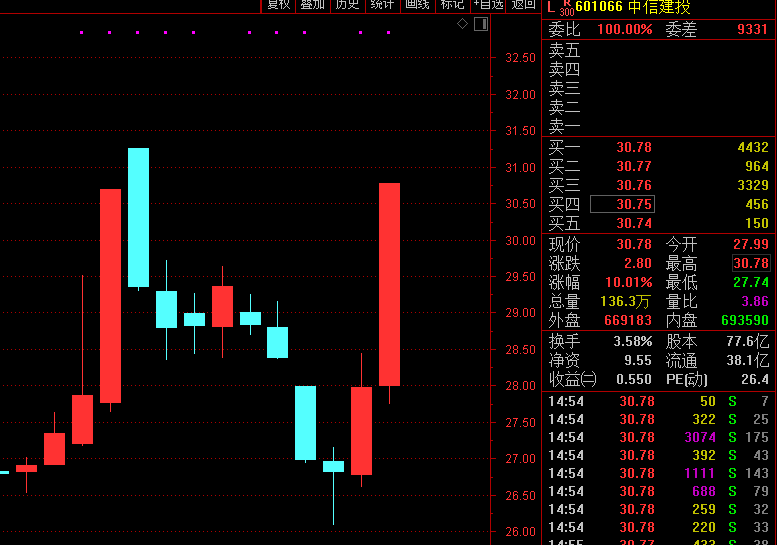 今天A股市场上,中信建投和中信银行均是上涨走势,其中中信建投还涨停了。