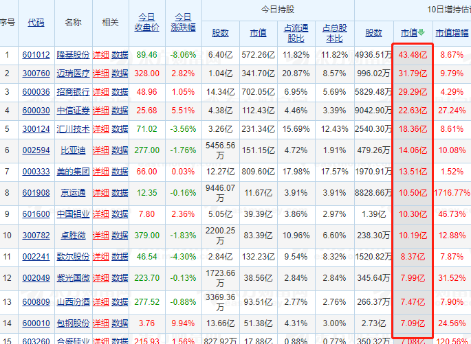 而根据东方财富截至8月31日数据,近10天内,北上资金增持最多的股票是隆基股份,前10名也有招商银行和中信证券两只金融股。