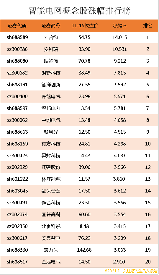 以上就是为读者们带来的智能电网概念股涨幅排行榜的相关信息,本文是根据有关数据及近期事件所撰写分析文章,并不构成投资建议,据此操作,风险自担!(本文属于非商业性文章)
