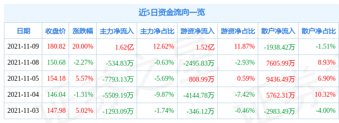 资金流向数据方面,当日主力资金净流入1.62亿元,游资资金净流入1.52亿元,散户资金净流出1938.42万元。近5日资金流向一览见下表: