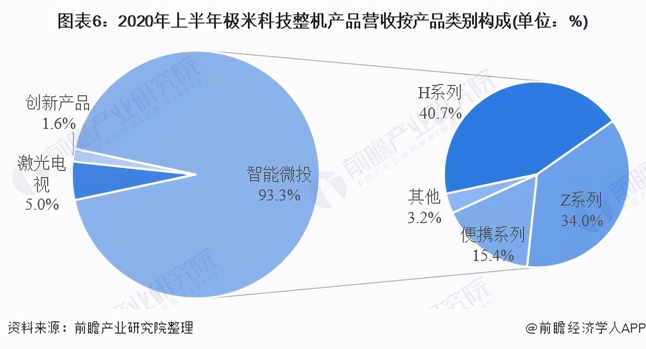 据公司招股说明书数据显示,目前,公司整机销售收入以智能微投系列销售收入为主,2017年以来,智能微投系列销售收入占各期整机销售收入比例均在85%以上,2020年上半年,智能微投系列销售收入占各期整机销售收入比例为93.32%,其中以H系列和Z系列为主,两系列销售收入占整机销售收入比例分别为40.7%和34.0% 。