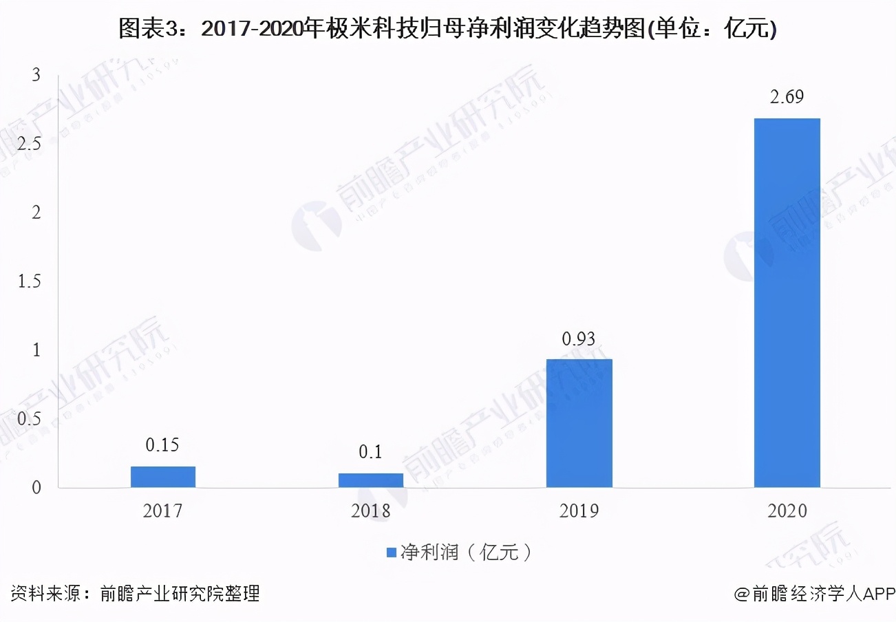据公司招股说明书数据显示,2017年以来,公司发展迅速,营业收入持续提升,净利润更是实现跨越式增长。2017-2020年,营收由9.99亿快速增长28.28亿,三年复合增长率为41.5%,净利润由0.15亿快速爆发增长到2.69亿,三年复合增长率为161.8%。