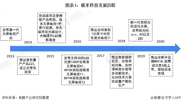 极米科技成立于2013年。从2013年发布首款无屏电视产品到现在,短短8年时间,极米科技就从一家初创公司迅速成长为科创板上市企业,上市首日公司市值超过200亿元。