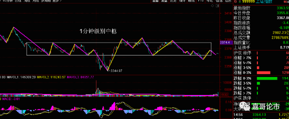 从技术上看,大盘开盘之后探底回升,在调整中是出现了1分钟级别中枢背驰形成反弹,但是这个反弹非常弱,因为连1分钟级别中枢都没有冲破,而且量能已经下降到了2900亿,缩量反抽空间肯定是有限的,所以我认为这个调整还没有结束,近一阶段大盘要止跌的必要条件是形成1分钟级别3买。短期支撑位继续参考3328点。