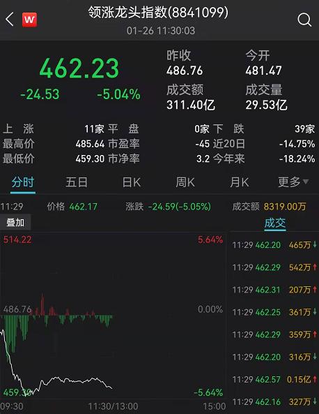 半日成交4868亿元。盘面上,风电设备、有机硅等板块涨幅居前。数据安全、数字经济等前期热门板块跌幅榜前列,同时前期拉涨的热门股也继续歇菜,炒作资金纷纷撤退,迎来跌停潮。