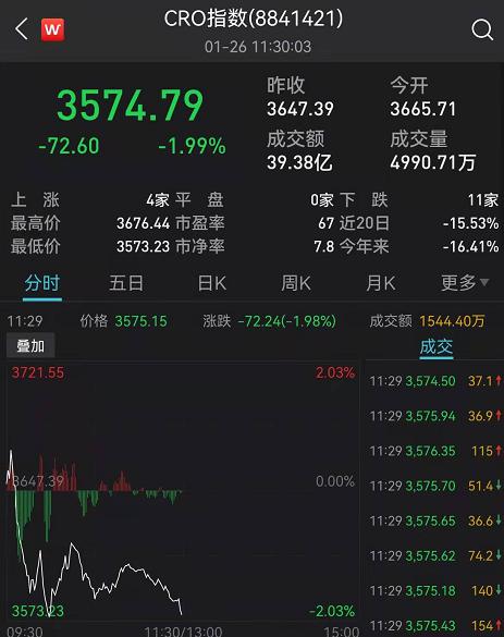 与此次同时,CRO指数继续下挫近2%。