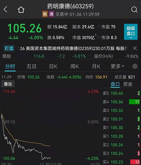 3000亿龙头药明康德继续跌超4%。