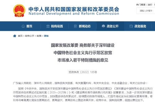 深圳放宽市场准入特别措施发布