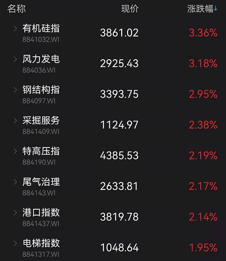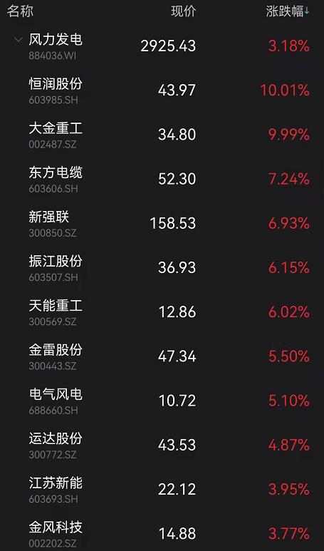 风电板块则高举高打,指数大涨超3%。