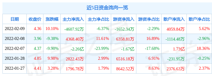 资金流向数据方面,当日主力资金净流出4607.92万元,游资资金净流出1652.34万元,散户资金净流入4059.84万元。近5日资金流向一览见下表: