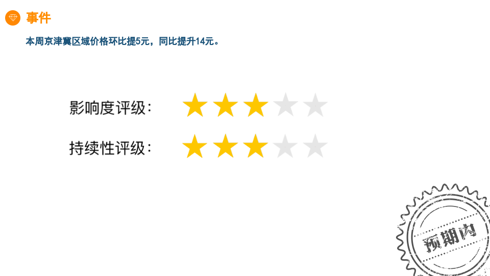 本周京津冀区域价格环比提5元,同比提升14元。该事件已