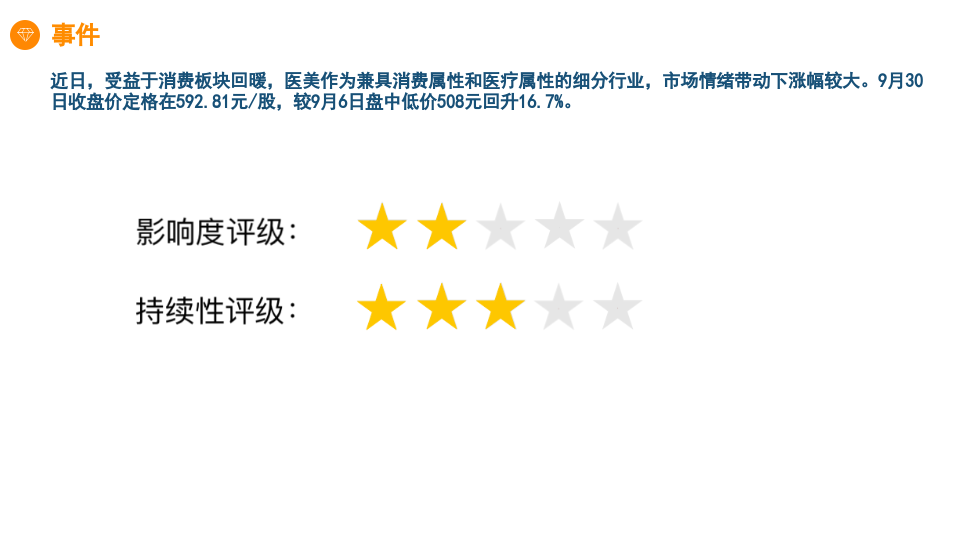 近日,受益于消费板块回暖,医美作为兼具消费属性和医疗属性的细分行业,市场情绪带动下涨幅较大。9月30日收盘价定格在592.81元/股,较9月6日盘中低价508元回升16.7%。300896爱美客(599,1.04%,17.50)是纯正的”轻医美”头部