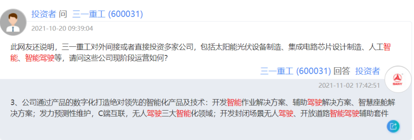 巧合的是,工程机械“市值一哥”三一重工此前就大举朝着智能驾驶领域发展。