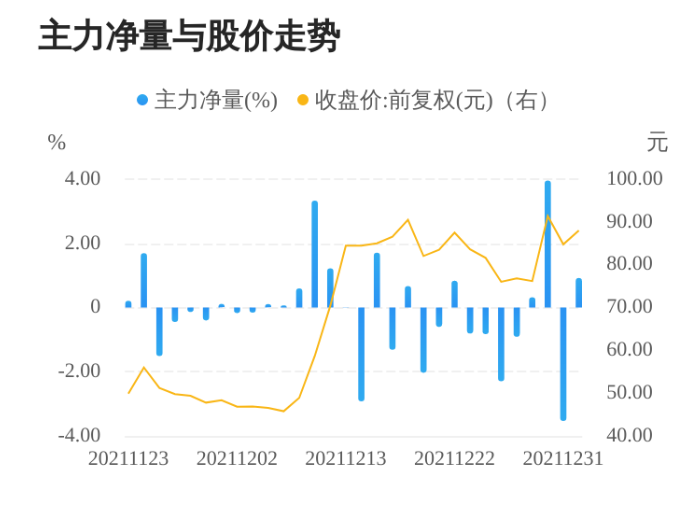 今日主力资金净流入3534.58万元,涨跌幅为3.82%,主力净量(dde大单净额/流通股)为0.92%,两市排名93/4601。