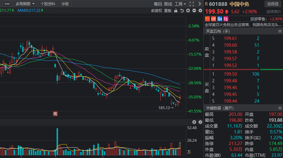 中国中免:总市值为3785.46亿元,市盈率为33.01倍,机构预测2021年净利润增幅达68.95%