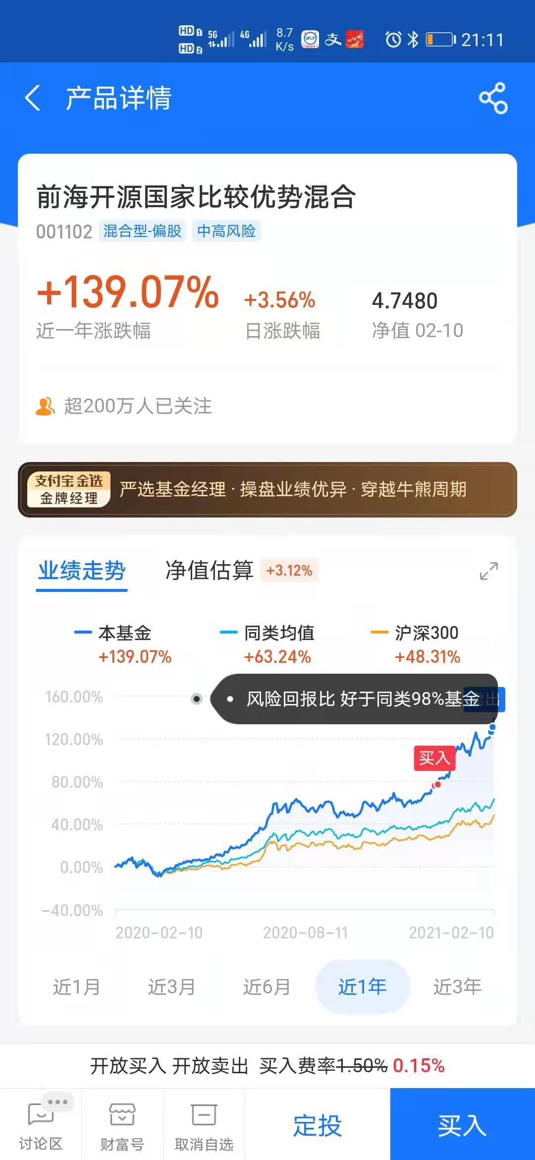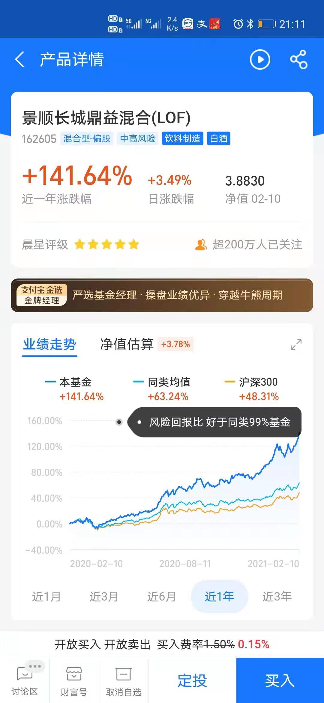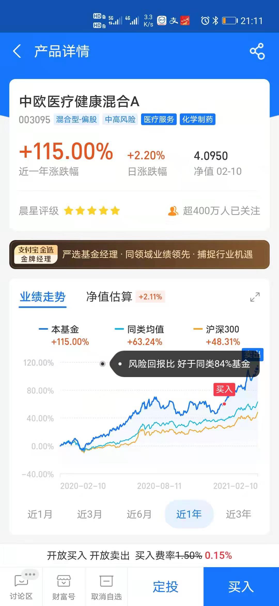 选择要点:明星基金经理张坤,白酒+港股,价值成长的典范,如果非要说一个缺点的话,就是盘太大了,最近限购额度为每天2000。虽然我的原则是不选规模过大的基金,这只基金已经几百亿了,但没办法,还太优秀了。定投和梭哈两相宜。
