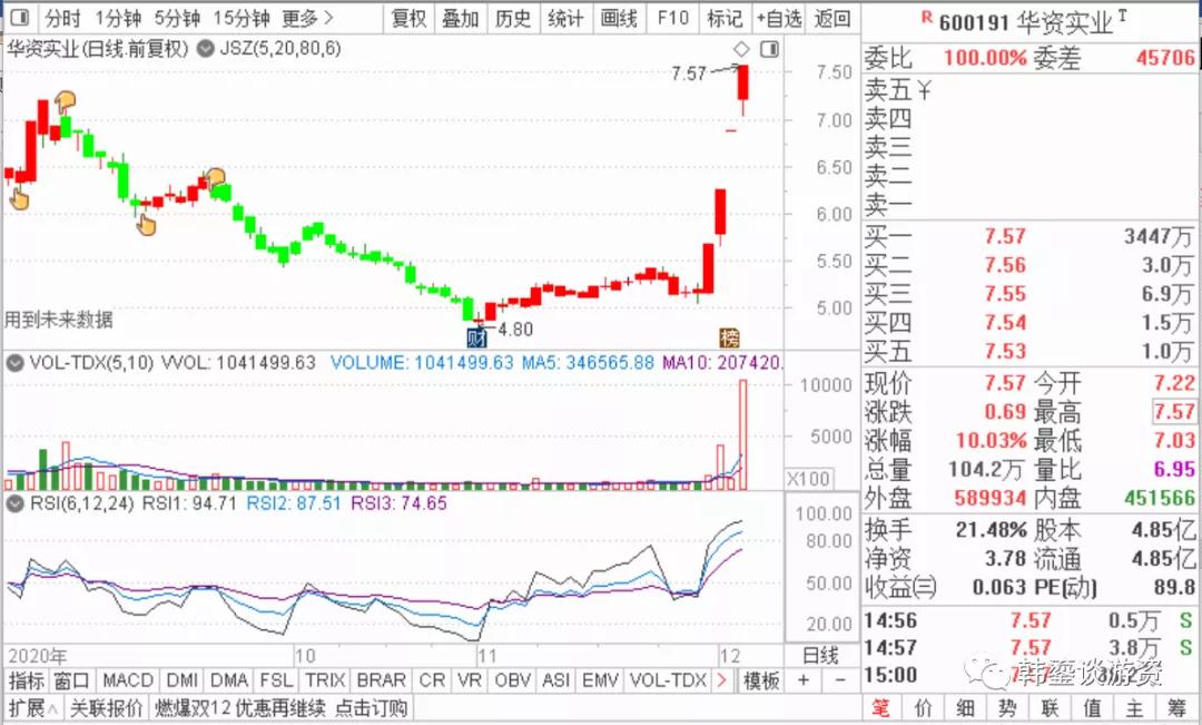 华资实业(600191)4连板,今日或受面临前高以及大盘的震荡的影响,盘中也曾一度开板出现放大量,只是没上榜;不过,昨日受到以国盛宁波桑田路为首的四家浙江本地活跃游资联手主导封板,可见他们对该青睐有加;当然,它的炒作逻辑主要是参股券商;横观它的前生今生,后市只要不再放大量大涨,那么后市仍有上涨空间。