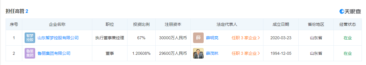 据天眼查,寿光墨龙控股有限公司是当地国资委,而智梦控股的实际控制人薛明亮背后的资本是鲁丽集团。