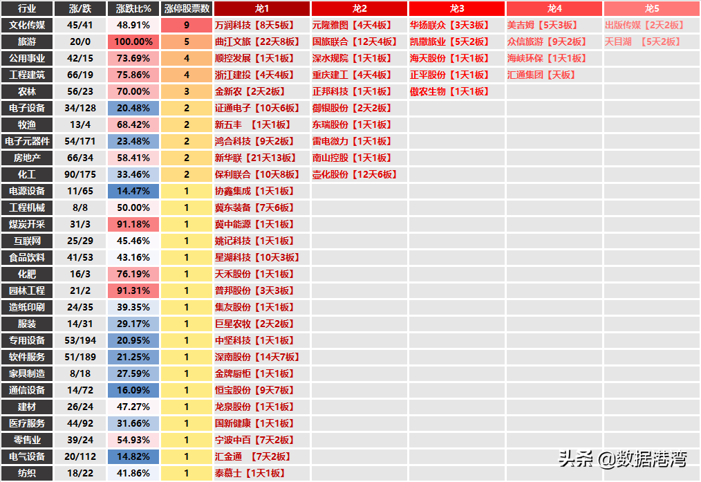行业 涨/跌 涨跌比% 涨停股票数 龙1