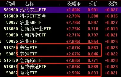 昨日除了医药类ETF基金涨幅居前之前,就是养殖基金更靠前了,甚至超过了证券ETF基金,那么具体发生了什么,导致养殖类基金居然可以逆势随风而上呢?