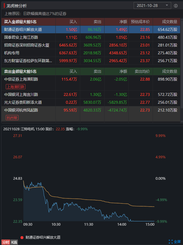 该股今日跌停,却聚集了章盟主、上海溧阳路、上海超短帮等游资大佬大笔买进卖出,是获利了结还是逢低吸筹?请大家保持关注!