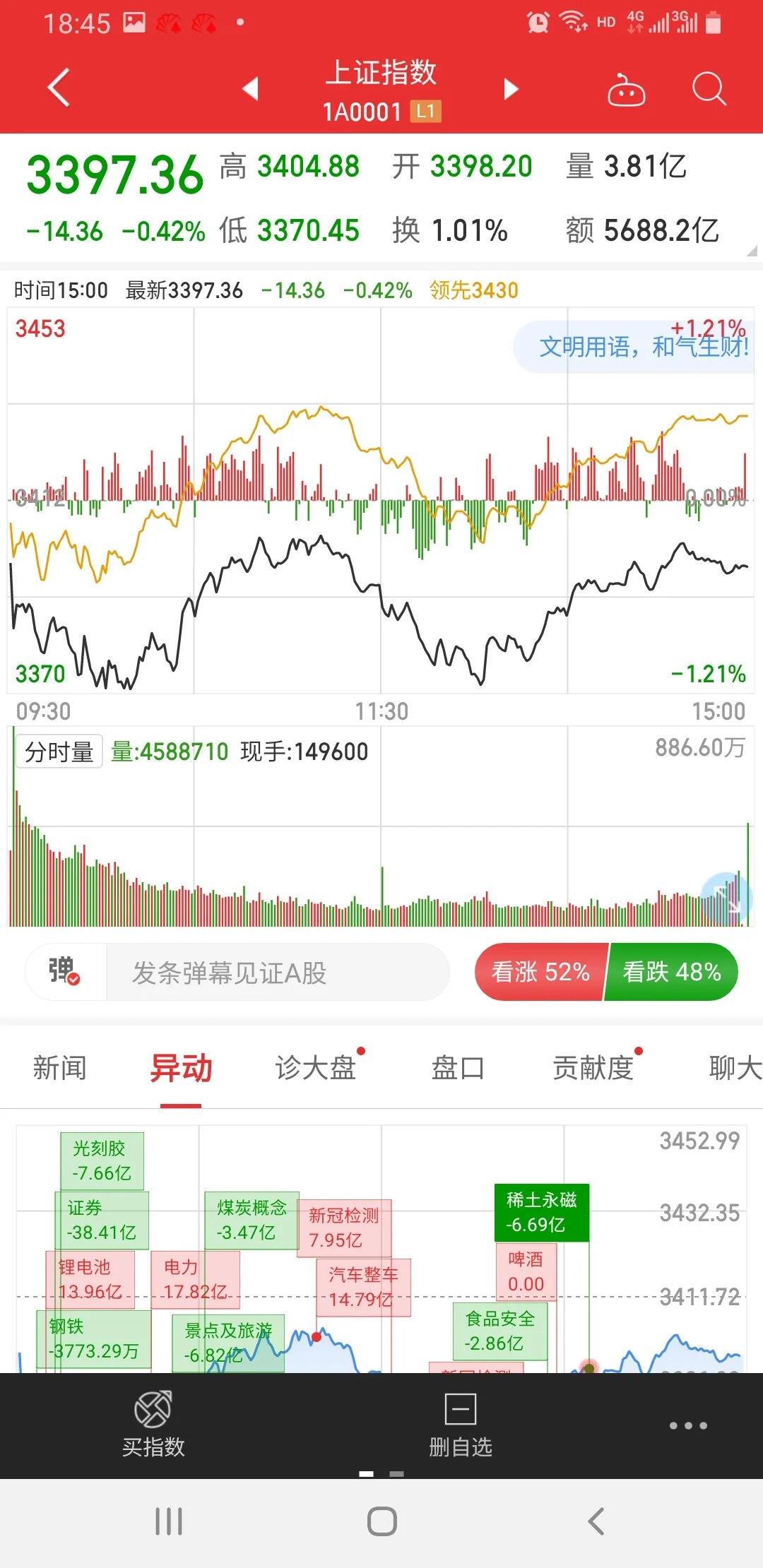 沪指跌0.42%,创业板指跌0.56%,两市成交额超1.3万亿元,连续第8个交易日突破1万亿元。在外资动向上,北向资金今日小幅净买入22.47亿元。