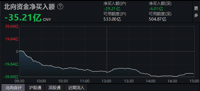 今日北向资金净卖出35.2亿元。