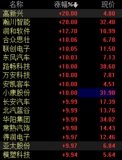 华为汽车概念掀涨停潮。”最全”华为汽车概念股池新鲜出炉