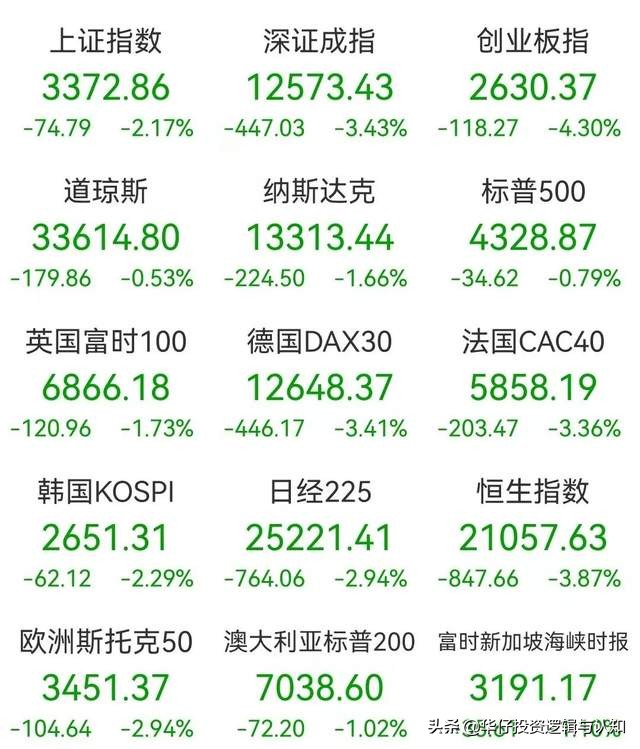 亚太方面,日经225指数大跌接近3%;韩国KOSPI跌超2%,富时新加坡海峡时报、澳大利亚标普200跌超1%。