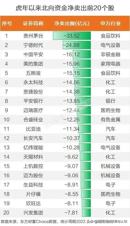 而从外资动向看,东方财富Choice数据显示,虎年以来已经有部分北向资金从宁德时代中撤出,遭净卖出25亿元,仅次于贵州茅台的34亿元。