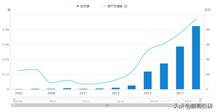 3.负债持续暴增,金融性负债占比过高,资金链趋紧