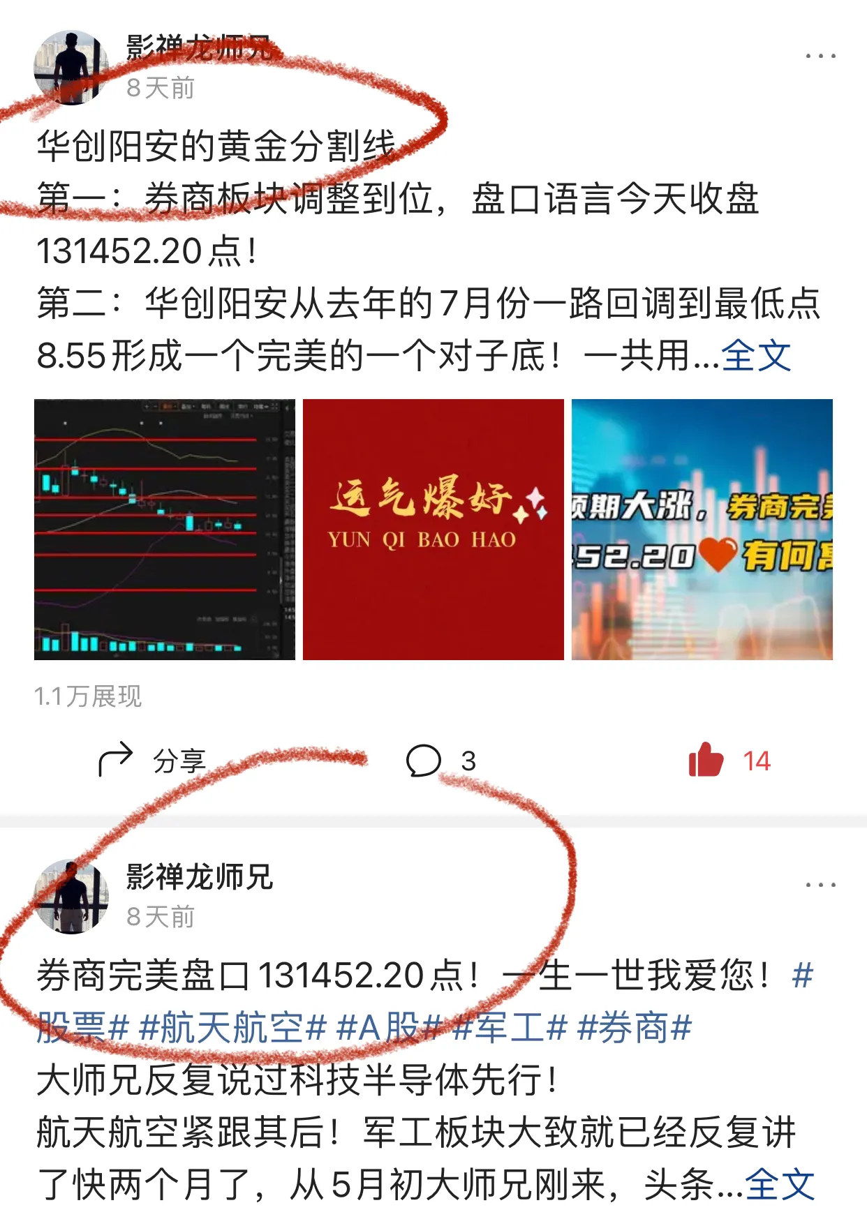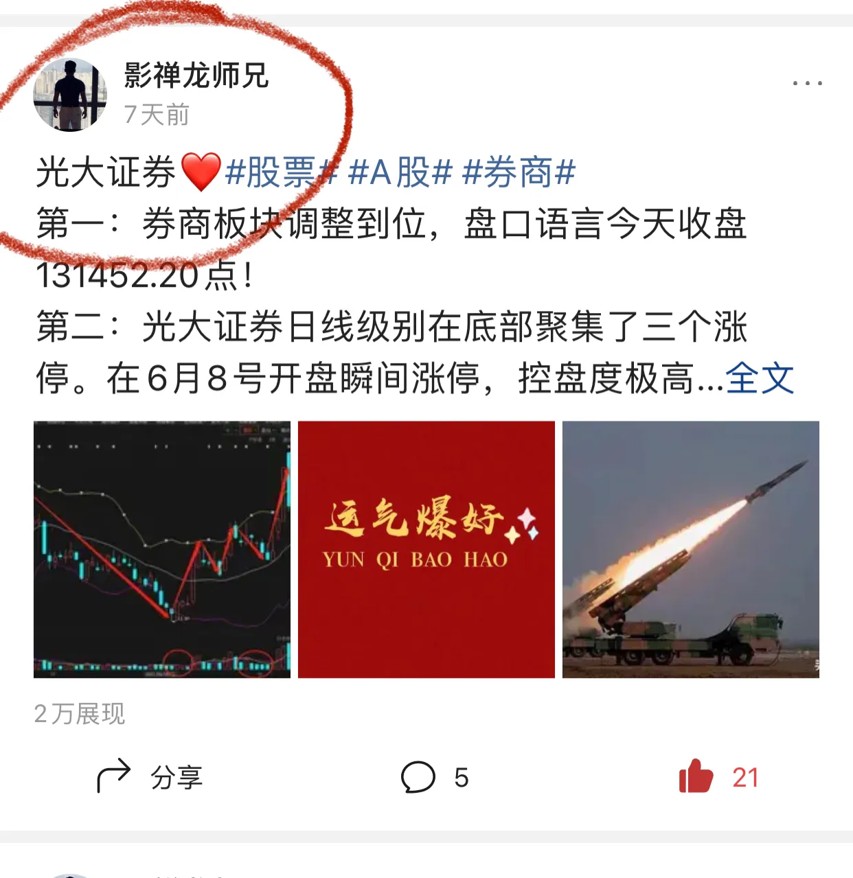 本周末大师兄反复讲过3点非常关键,其中第一点就是本周3600点以上切勿新开仓位,(图3)跟随大师兄在6月21号潜伏的光大证券和华创阳安逆市吃肉(图1和图2)3500点反复提醒券商低吸机会和上证指数的加仓机会,你要到3600点以上去做加仓,我也没办法!华创阳安10元左右,光大证券17元以下都是非常好的位置,现在基本上都是有盈利7~8个点以上,短期的回踩很正常。今天这两个券商都是排名第一,第二。