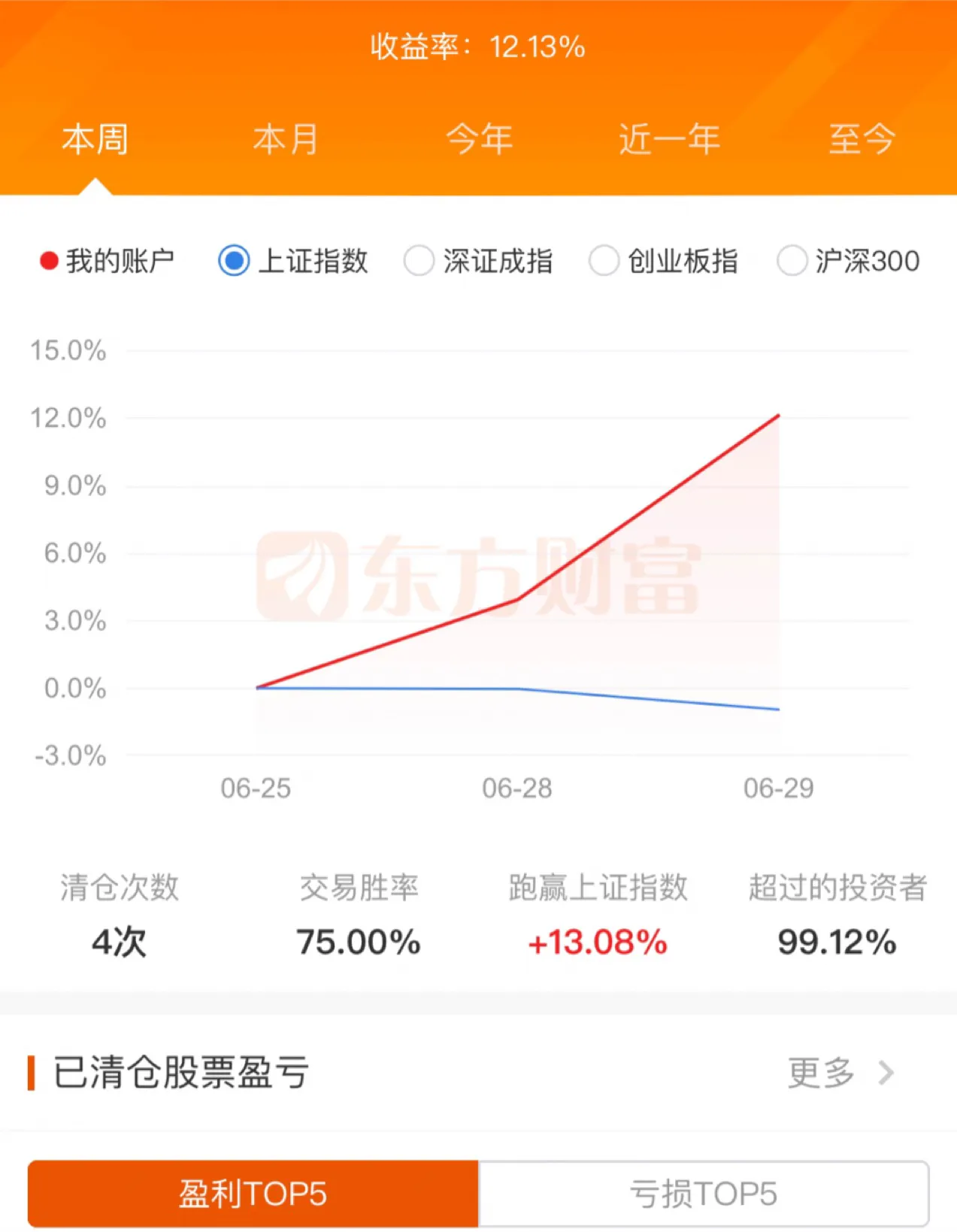 新粉要明白大盘跌你要不亏,就是赚了,至少跑赢70%的股民,比如21号低吸的华创和光大,至少跑赢80%以上!大师兄的铁粉本周一不小心又跑赢大盘13%(图7)