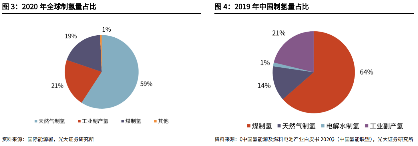 制氢路径差异大,短中期化石能源制氢和工业副产氢将成为我国氢气供给的主要来源
