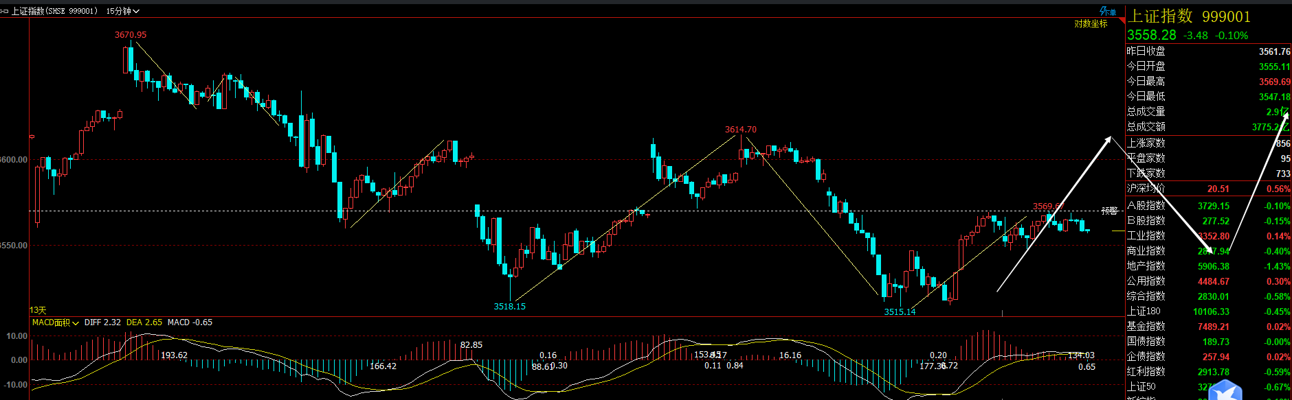 至于大盘,目前是15分钟级别中枢盘整,后续会继续冲高到3600以上,但是当15分钟级别上涨走完,又会要15分钟级别回落,所以大家可以根据节奏来掌控手里的个股买卖,打打短线差价,赚几个饭钱也是不错的。