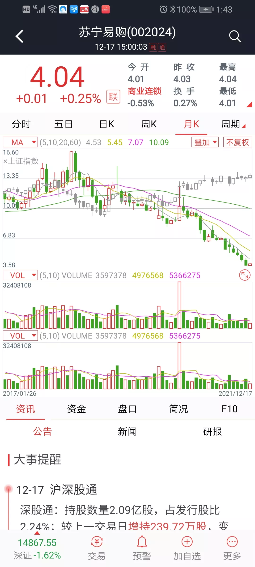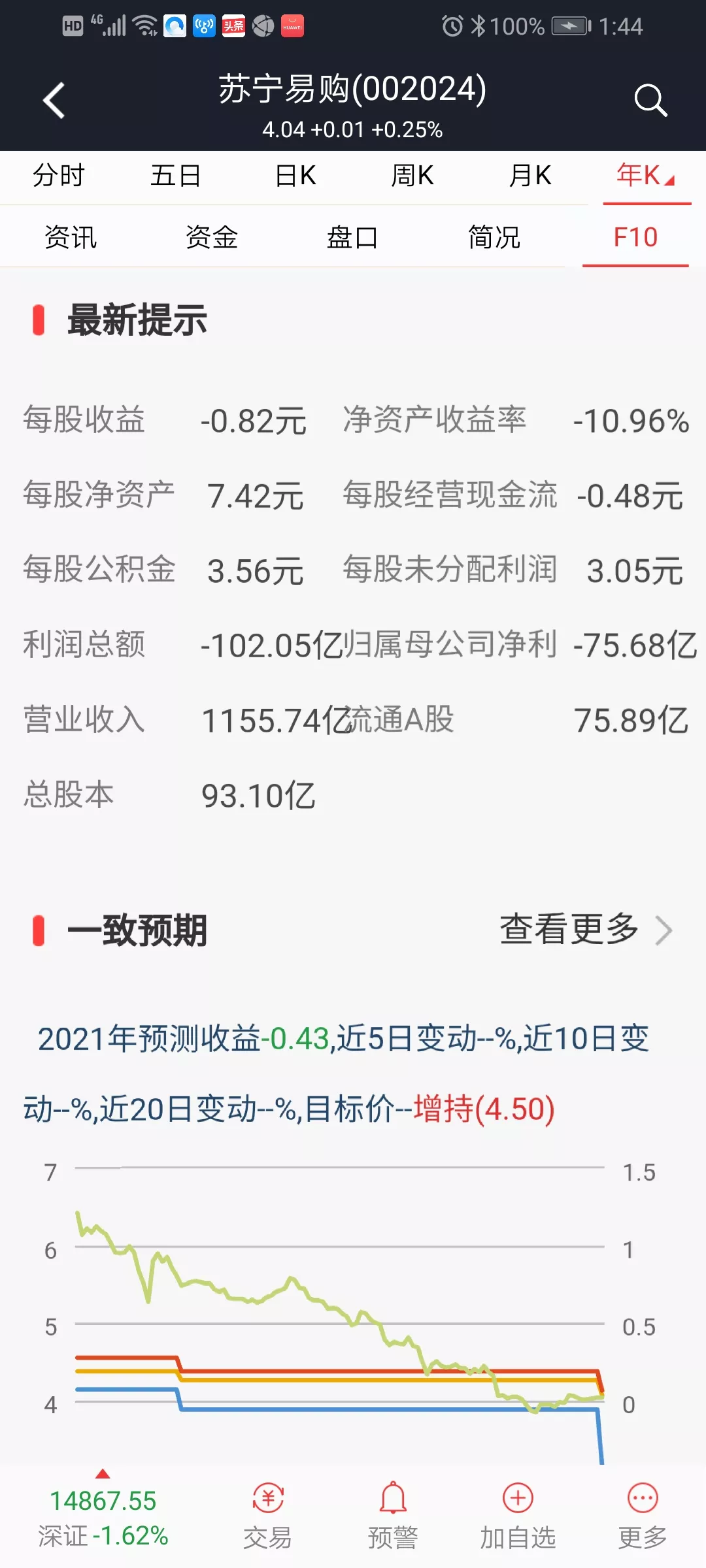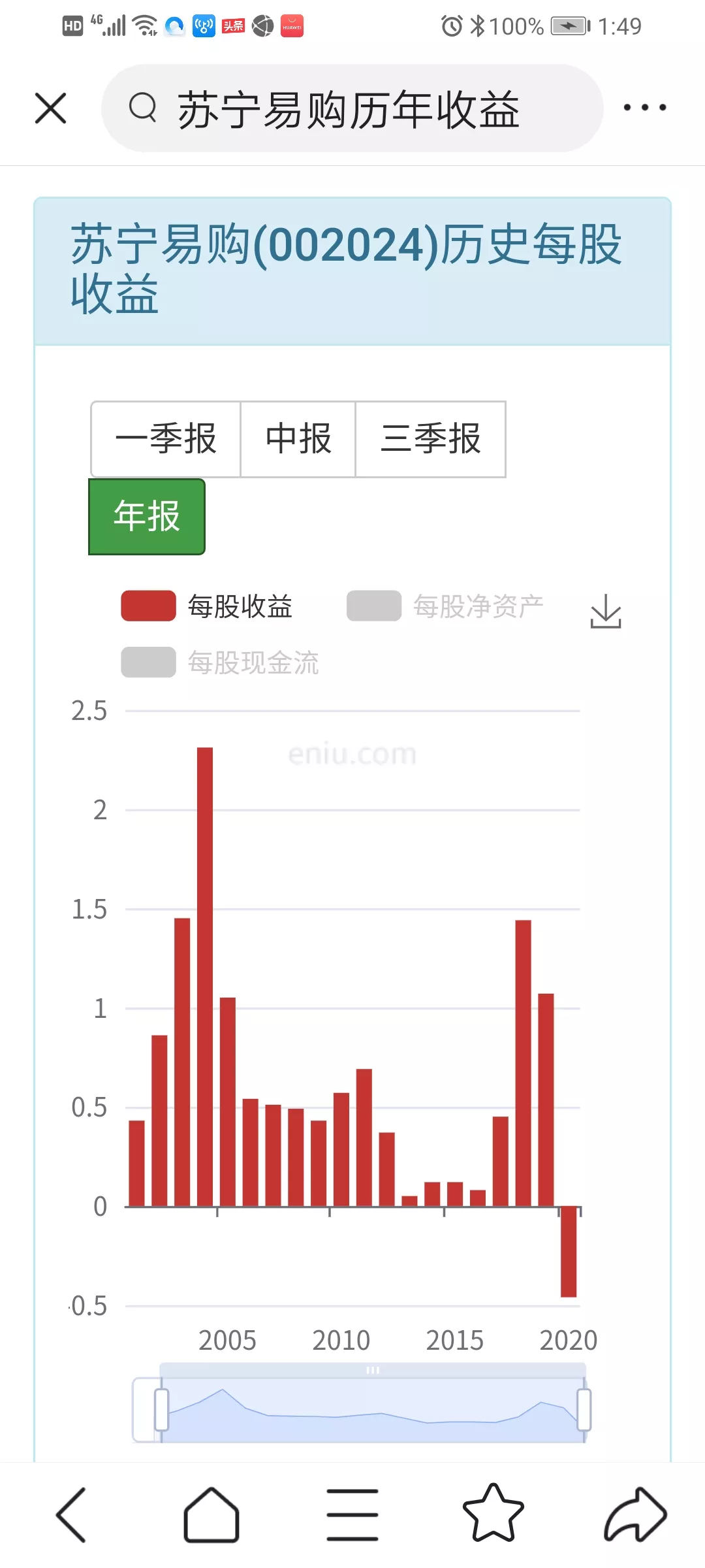 所以还抱有长期持有的打算。因此长期持有出现了亏损。但是当我卖出以后,苏宁电器的盈利能力又慢慢的出现了持续上升。随着盈利上升,股价也逐步升高。
